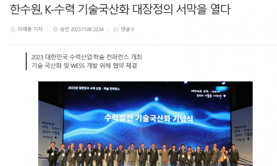 [2023 대한민국 수력산업 학술 컨퍼런스] 수력발전 기술국산화 R&D 협약식
