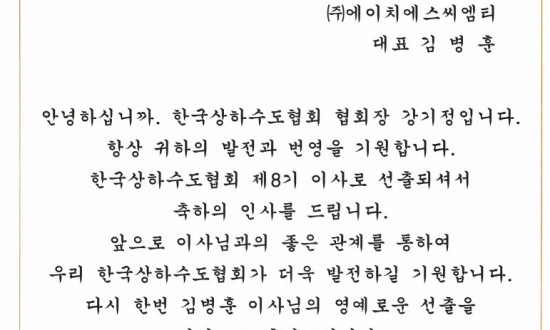 2023년 9월 19일, 한국상하수도협회 정기총회를 통해 제8기 선임직 이사로 (주)에이치에스씨엠티 김병훈 대표가 선출되었다.…
